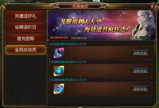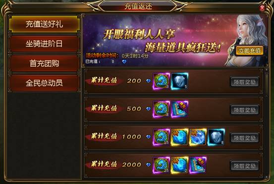玩家只要累计充值达到一定额度,即可得到当日充值活动的丰厚奖励返还。