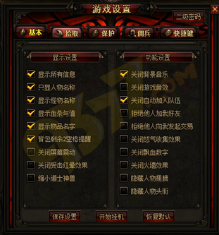 为了可以更好地体验游戏,您可以根据自己的需要对游戏系统进行相关设置,设置好后点击保存即可。系统设置按钮在游戏界面右上方,小地图旁边。