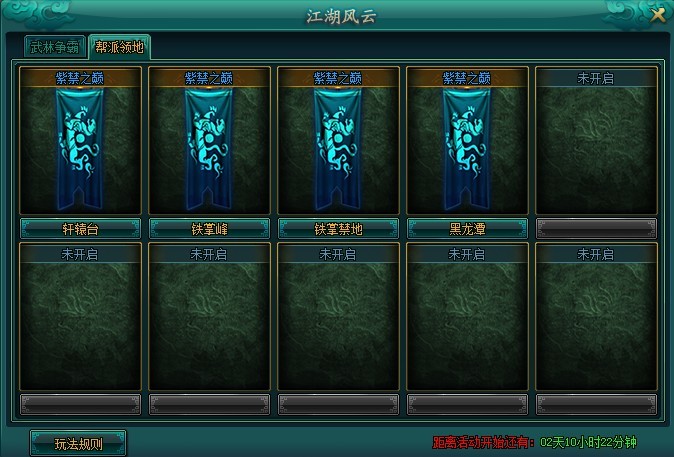 帮派领地争夺战会在特定时间开启,活动开启后,所有加入帮派的玩家点击帮派领地界面中的地图名称可自动寻路到插旗点。