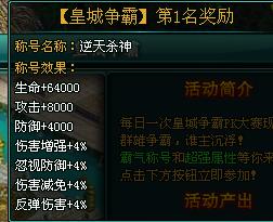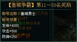 第四到第十名:大杀四方 PS:活动周期一天一次,活动开始前将回收奖励哦! 皇城组图