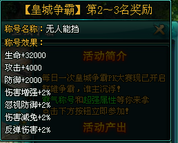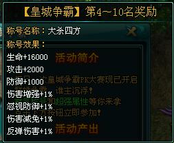 活动产出:【皇城争霸】荣誉称号及特殊属性