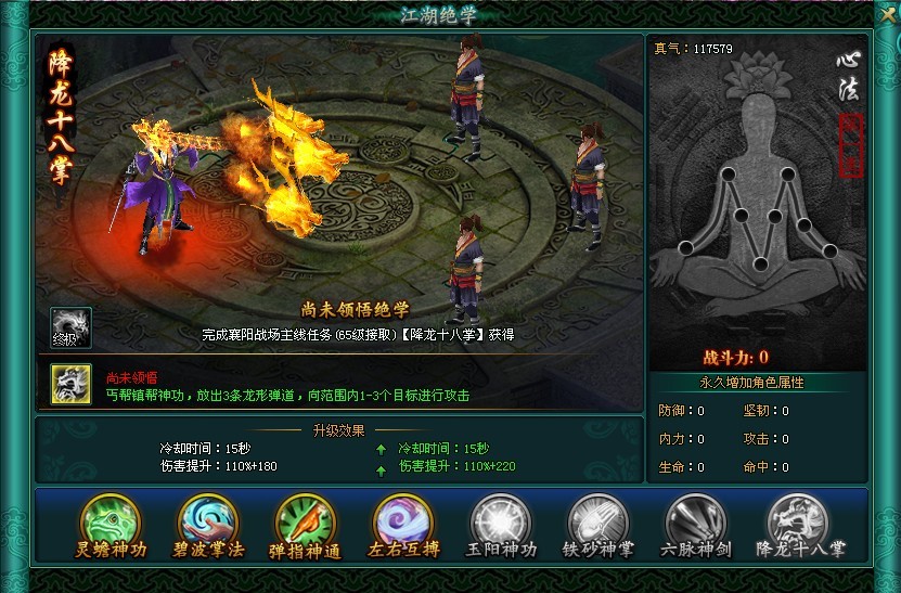 攻击性心法:被动生效的技能,但是需要拖放到特定的心法技能栏中才会生效
