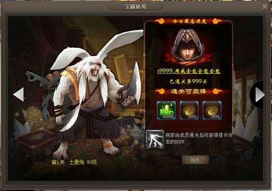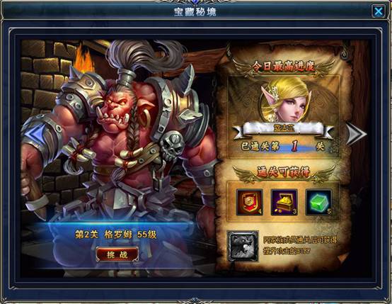 宝藏秘境界面左右有切换按钮可以切换查看关卡信息;只有已经解锁的关卡才能切换查看信息;如果未解锁,就切换,会提示:尚未解锁下一个关卡;