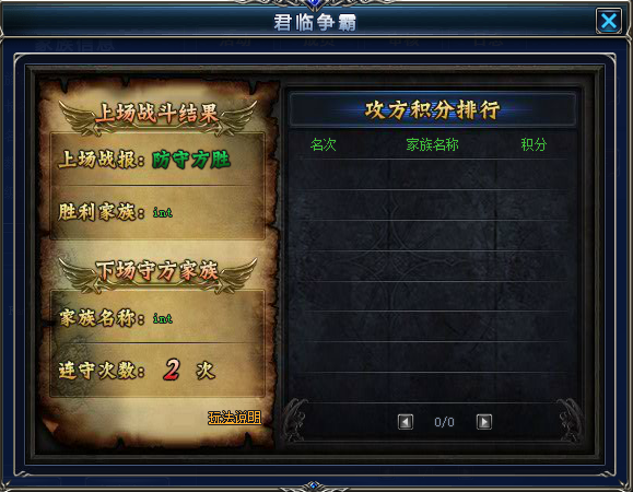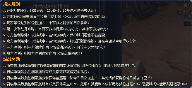 每天可以在家族君临争霸的活动查看相关的排行榜和攻防家族