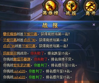 角色达到一定级别,就会开启个人竞技场,王者争锋,看谁才是最强的强者!