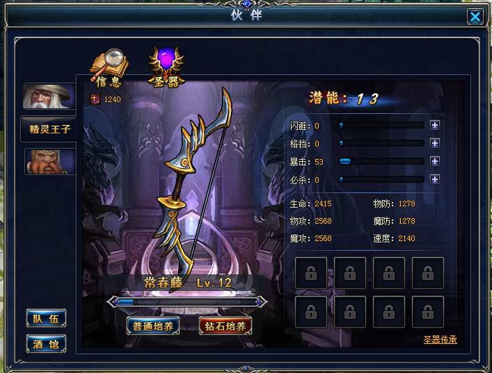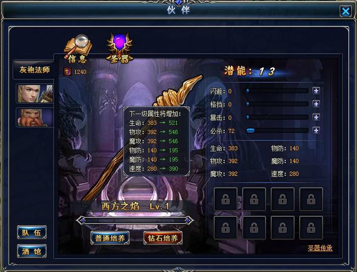 在《冰火之刃》里每一个伙伴都拥有自己独特的圣器,圣器的升级可以大幅度提升伙伴的的属性,