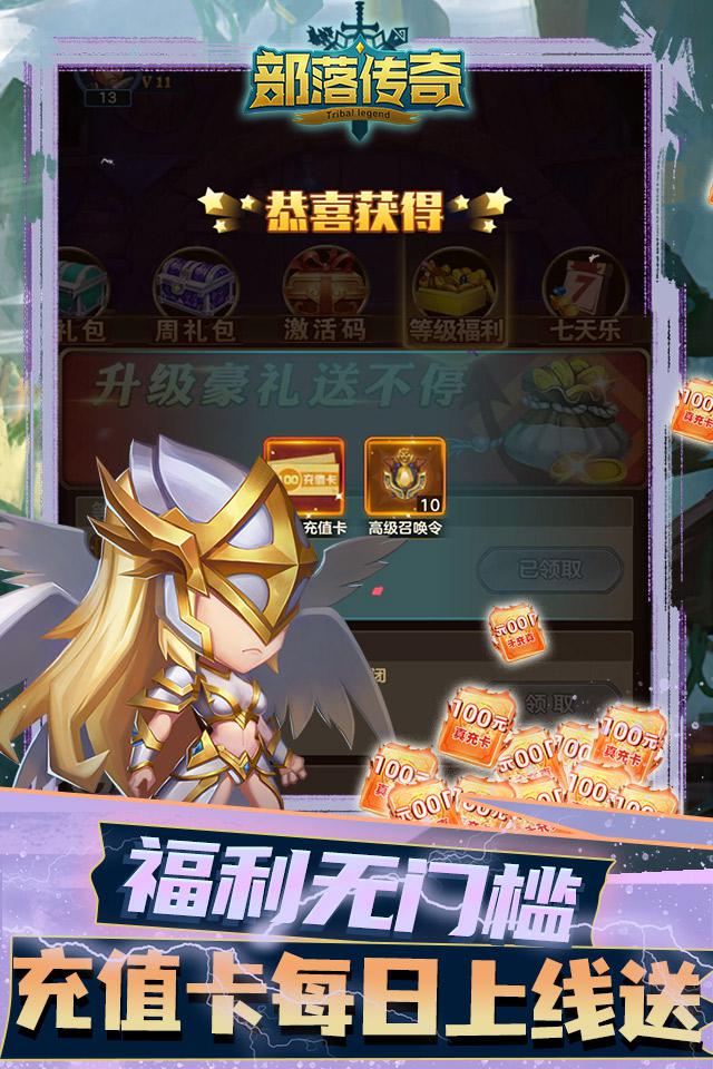 《部落传奇(送无限真充)》一款魔性的放置卡牌手游,好玩不氪、爽快不肝!增加宝石、神兽、圣灵、女神等系统,辅助英雄战力提升;无需耗费多余材料新英雄即可达到队伍等级,阵容搭配更加灵活;多样化的战斗系统玩法,提升玩家战斗乐趣;丰富的PVP竞技系统,让全服玩家一起公平竞技,与好友共同征战沙场。