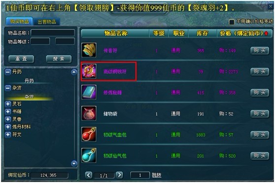 如果玩家身上有仙币的话可以通过仙币换取铜钱。点击商城,在热销或者常用中都可以买到高级铜钱符。