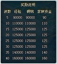 击杀完5波怪物后,发送一次奖励,奖励自动增加。这些奖励可以叠加的,比如你守住了20波怪的进攻,那么恭喜你,你背包中就增加了45万的铜钱。经验同样也增加了45万。