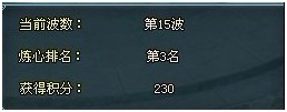 在副本右边显示着当前的波数、积分排名、积分多少的图表如下。