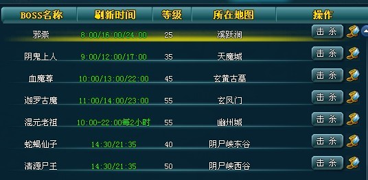 BOSS并不是24小时存在,它是有固定刷新时间的,所以要想第一时间打掉,必须了解它的刷新时间。