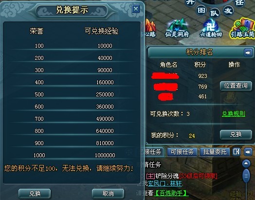 玄黄古墓并不会受到红名惩罚,而且若不是每天仅有3次兑换经验机会以及积分累积存在上限,古墓铁定会成为游戏里杀气最重的修罗场。彪悍的玩家会使用积分排名榜上的位置查询功能,锁定目前积分最高的三名玩家,而战力低的玩家则要密切关注自己的积分变化和周围境况,积满1000分赶紧换,遇到抢劫赶紧闪。回到安全区再飞出来。避开那些抢积分的人。