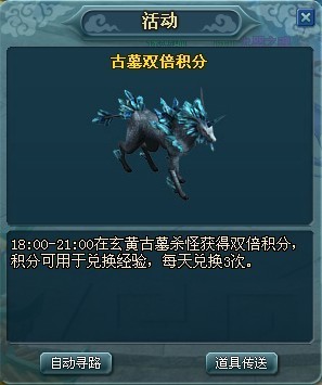虽然玄黄古墓全天开放,但是不建议玩家在这里长期挂机,兑换完3次经验即可收手。玩家退出地图积分不会消失,继续留在地图里积分也不会增长,古墓除了经验不会给你其他道具。基本上玄黄古墓就是给予玩家经验,也是只能给予玩家经验的地方。