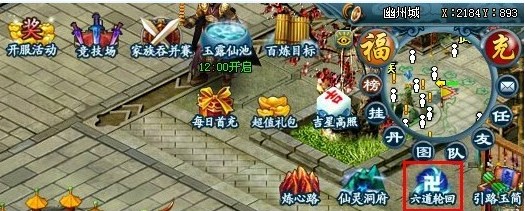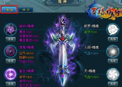 当百炼成仙人物境界达到元神元婴四层,等级≥50级可开启六道轮回玩法,在主界面右上角,点击六道轮回界面即可。