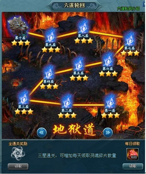 4、 每个关卡三星通关,可以增加每天领取的灵魂碎片数量;