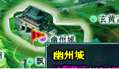 玩家鼠标移动到需要查看的地图图标上时,该“图标+名牌”将描边高亮。下面以幽州城为例,鼠标移动到该图层范围内,效果如下