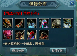 tips框信息包含地图名称、练级等级、地图表述、地图类型4个信息,且提示玩家点击发光地名可查看怪物信息: