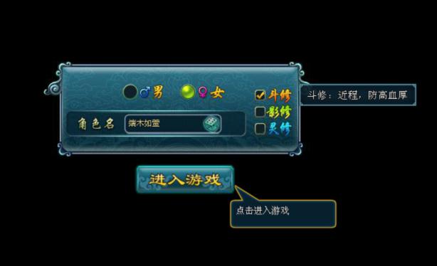 成功注册账号后,选择服务器进入到角色创建界面,百炼成仙有三个职业可选择:斗修、灵修、影修。只要鼠标轻轻点击,就可以选择喜欢的职业和性别了。