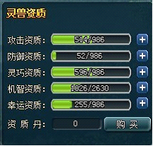 等级到达30级的灵兽可以进行归元,根据性格不同可以获得不同的灵兽丹,用于提升各种资质的上限
