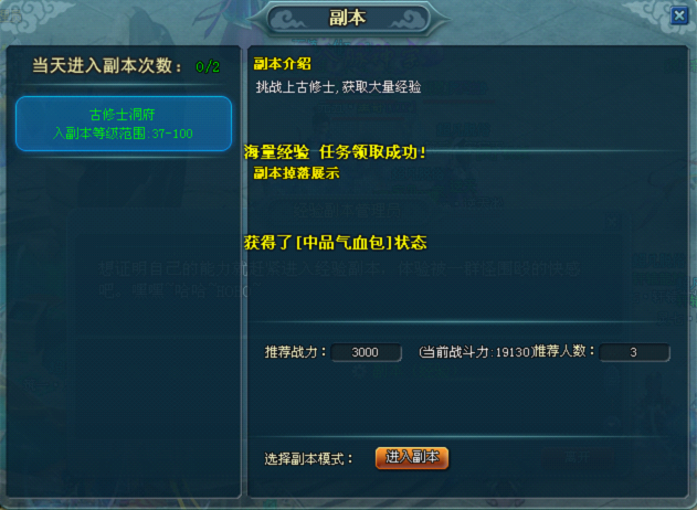 温馨提示:为了更有效率的通关副本,获取高额经验奖励,建议组队进行!