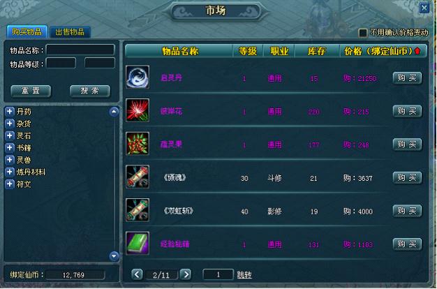 4、市场只能用绑定仙币进行交易,绑定仙币可以在游戏中获得,或者从商城购买物品卖到交易中心获得