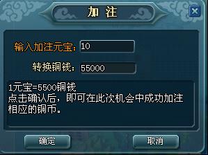 初始底注为5000铜钱,玩家可以通过元宝来增加低注,1元宝增加5500铜钱;