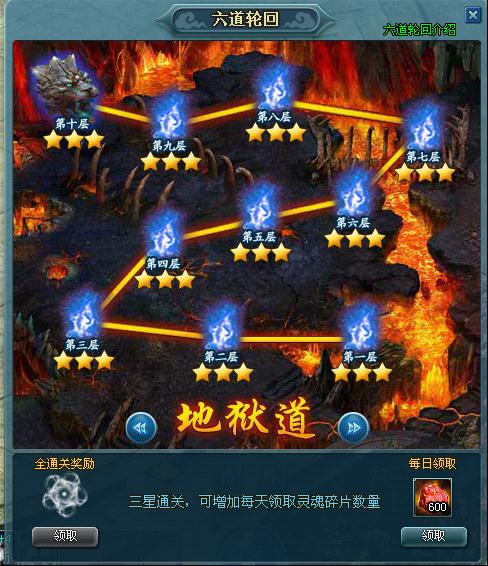 注:六道轮回每日领取每天只能领取一次,点击领取后,再有三星通关后,将不再增加每日领取的数量,同时只能次日才能继续累积继续领取。