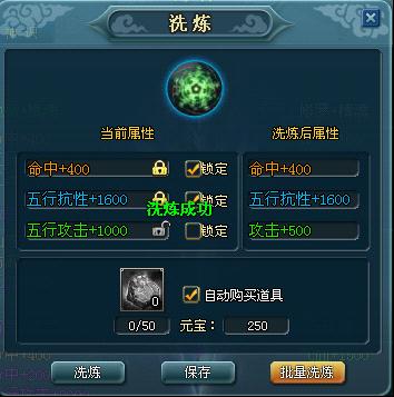 1)普通洗炼:改变没有被锁定的属性,可以选择保存新洗炼出的属性组合;