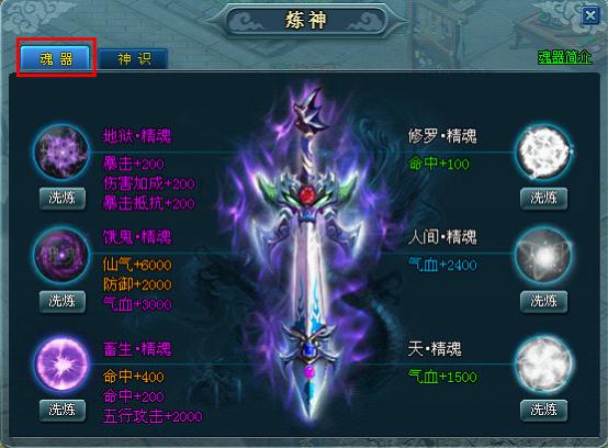 1、精魂洗炼需要消耗一定数量的灵魂碎片或元宝;