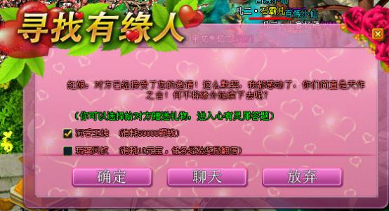 玩家收到另一名玩家的仙侣奇缘邀请时,也可以通过点击弹出的图标,选择是否接受邀请。