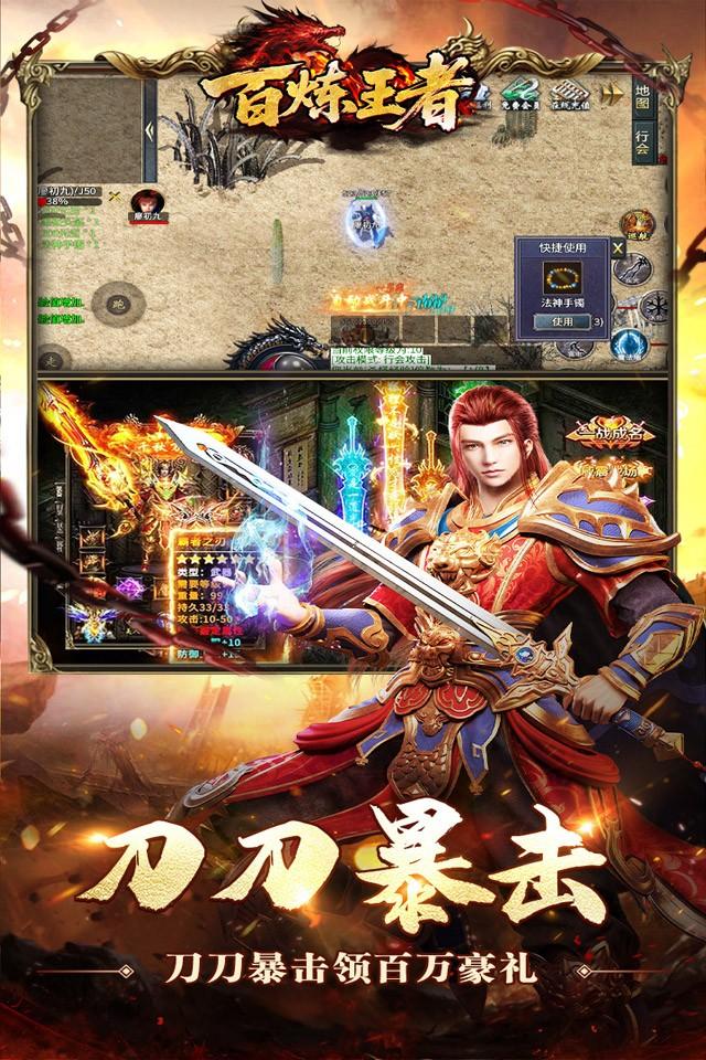 《百炼王者》(新年刀刀爆百万)是一款以传奇为题材的角色扮演高福利三职业高爆版本手游。玩法丰富,结合攻速专属、剧情、沉默、复古等元素,战士、法师、道士,三大职业,各不相同,不一样这技能特色,给你不一样的体验,回归沉默打金传奇本色,一切装备货币材料靠打,时间称王!