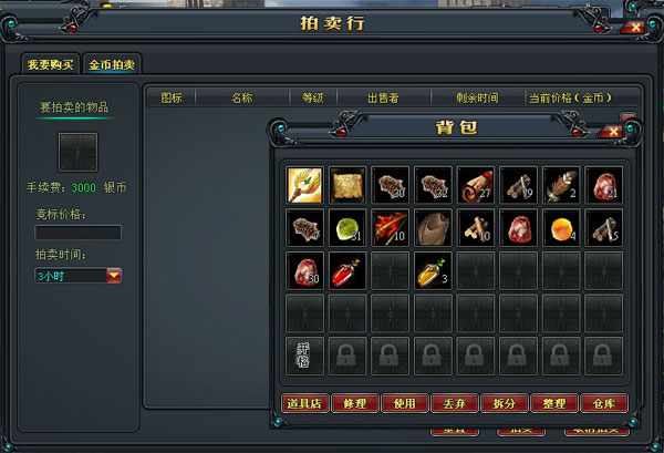 将背包中的物品直接拖拽到拍卖行,设定好价格即可进行拍卖