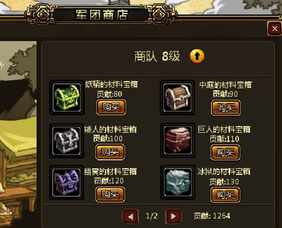 1军团商店兑换(不同材料宝箱需要不同商店等级)