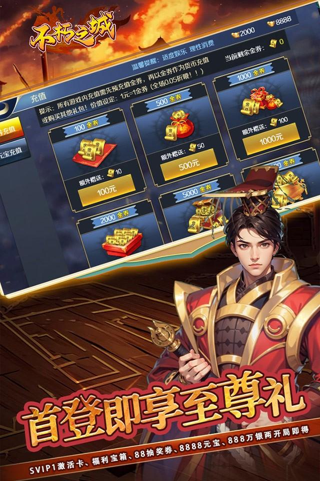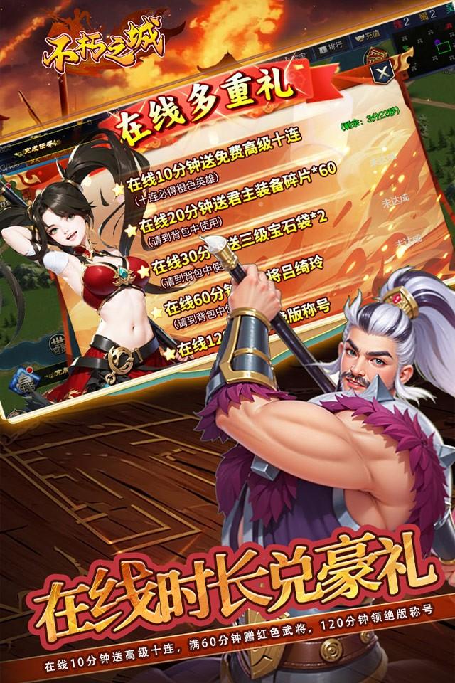 《不朽之城(0.05折三国领红包)H5》是一款深度融合放置挂机与战争策略的三国题材手游。在这里,您将体验到多维编队组合、特色武将技能与辽阔动态战场,感受瞬息万变的国战风云。无论是运筹帷幄还是沙场点兵,您都可率领麾下将士攻城略地,最终问鼎九州,成就天下霸业!