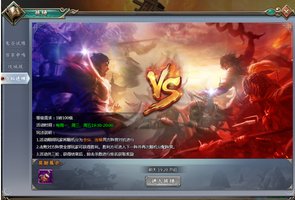 报名结束后活动正式开启,将玩家分为两方阵营:合纵方和连横方