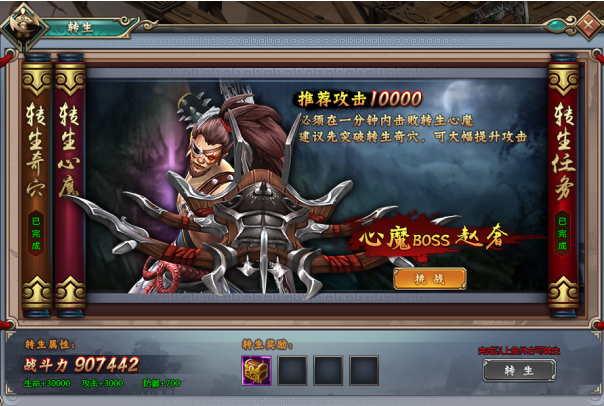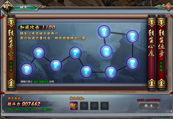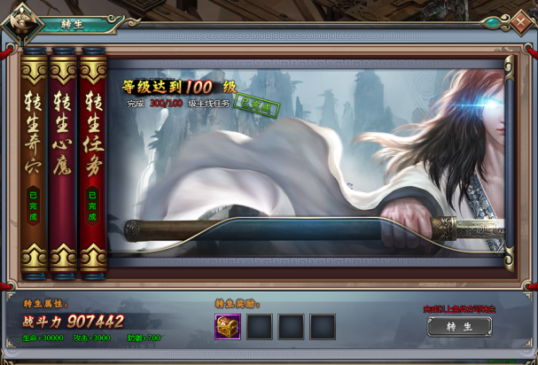 达成以上三个条件后可进行转生,获得大量属性和道具奖励