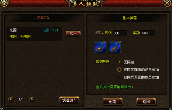 玩家在开启战役后需要等待队伍满员才能开始战斗,一个队伍4人满员,战役的开启者能对队伍列表进行相应的操作,例如,队伍的排序、人员的去留等等。在创建队伍之前,创建者还能对加入队伍的玩家进行限制,如仅限同阵营玩家、仅限同军团玩家等。