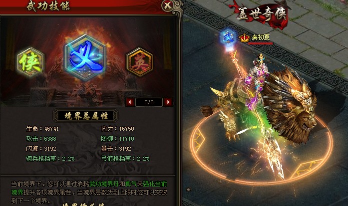 武功境界可以分为“初、高、武、侠、义、英、尊、圣”8层,每层境界又有10小层的分级。