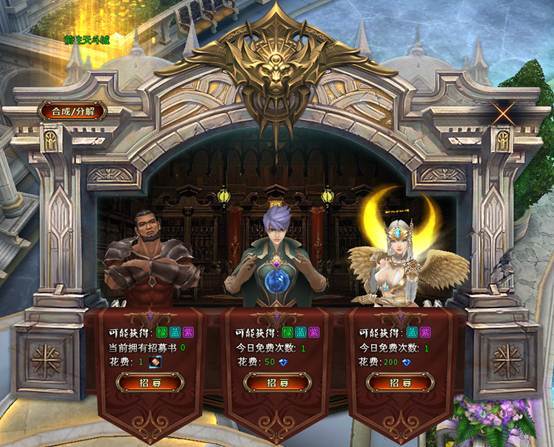 中级招募:花费50钻石(绑钻)或者中级招募书可进行一次招募;