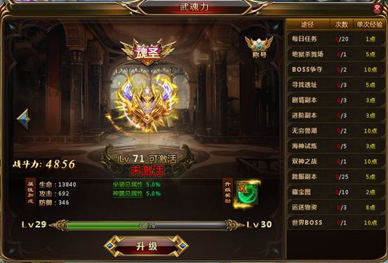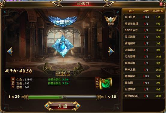 2)相应的武魂力经验即可点击升级(扫荡和一键完成也视为完成)。