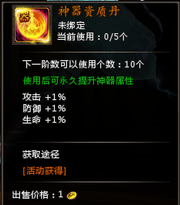 (1)神器可以喂食资质丹,资质丹可以按百分比增加神器的进阶属性;