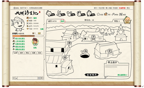 1、 点击帮派图标,进入帮派。