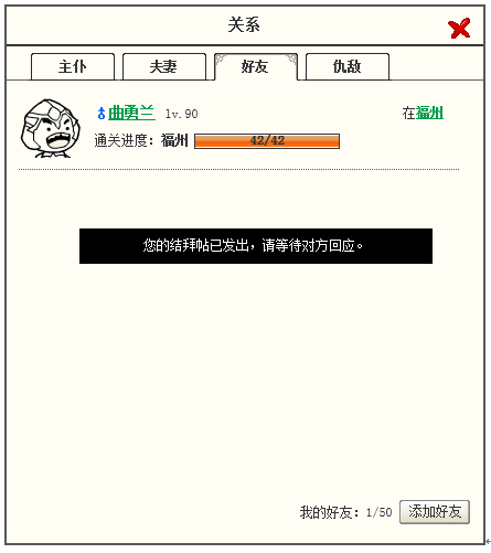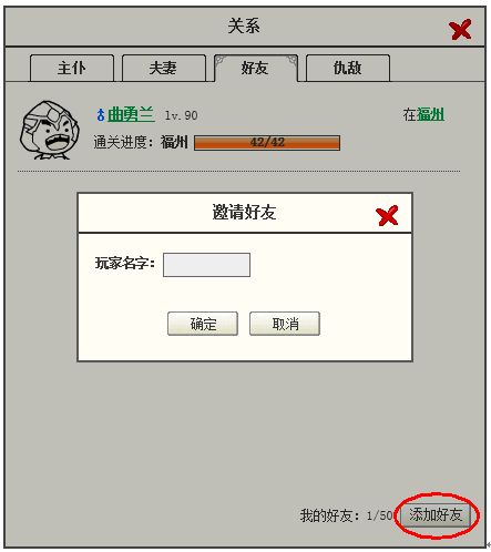 4、 输入玩家名,确定,对方收到互动消息,接受后,双方添加好友成功。