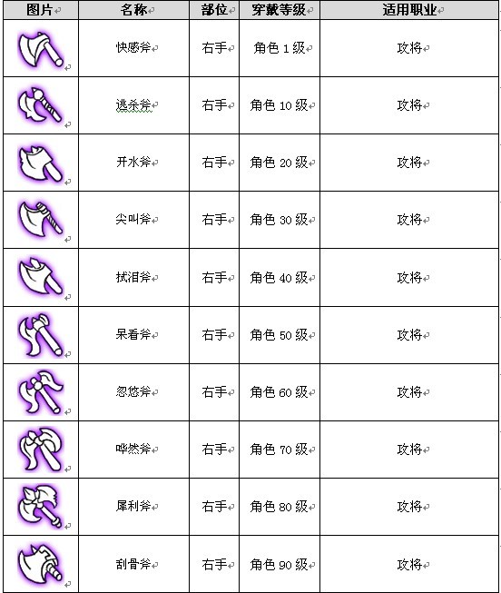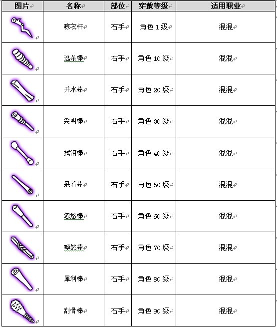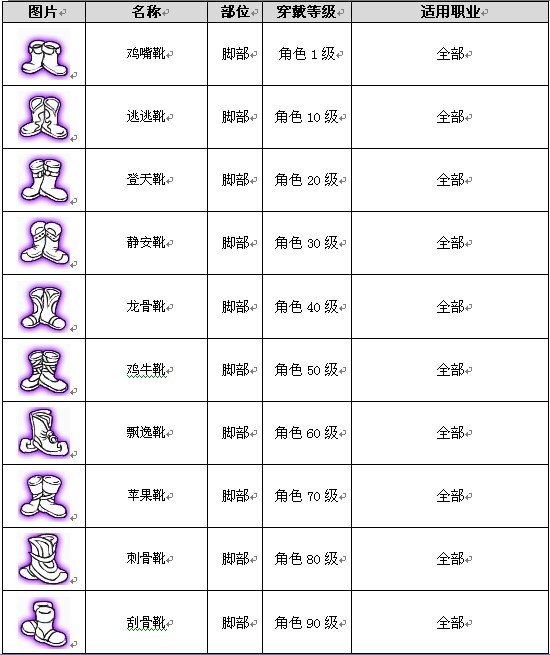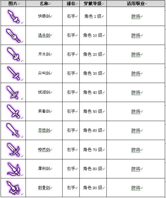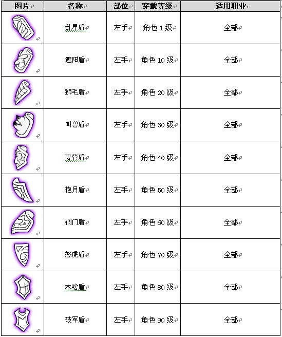 棒 剑 斧 弓 盾 盔 帽 甲 饰 靴