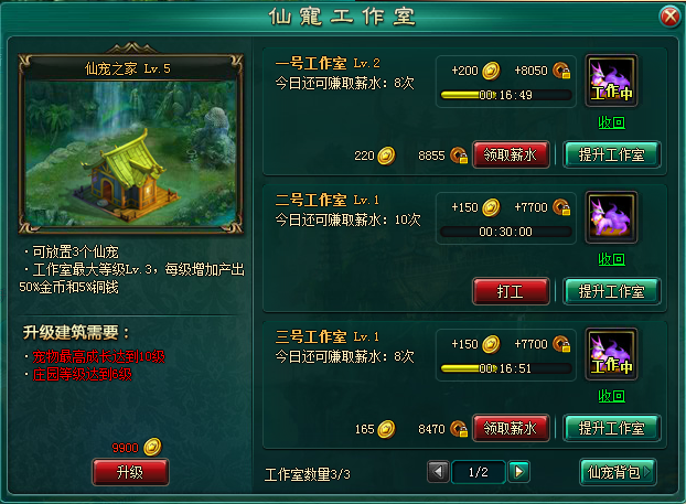 ² 影响工作室最大等级,工作室每升1级,可增加50%金币和5%铜钱产出!