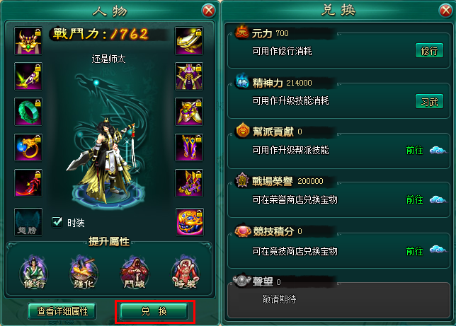 Ø 在角色面板可以查看各类积分,快速前往兑换物品。