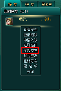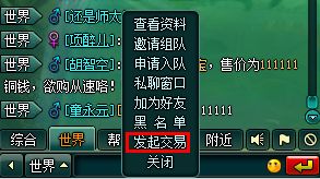 2、点击聊天窗玩家下拉菜单的交易选项发起交易;