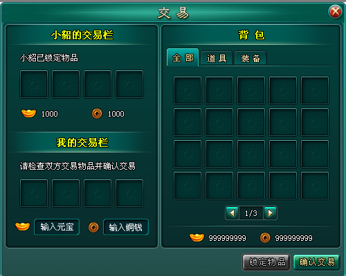 Ø双方确定交易后,交易双方锁定的物品和货币将互换并进入背包;