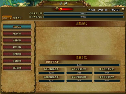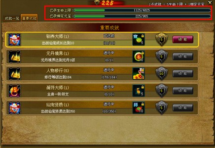 2、在领取成就点的同时会自动获得生命上限和绑定元宝。