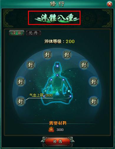 3、达到不同的修行等级可获得不同的属性,淬体一重二重…